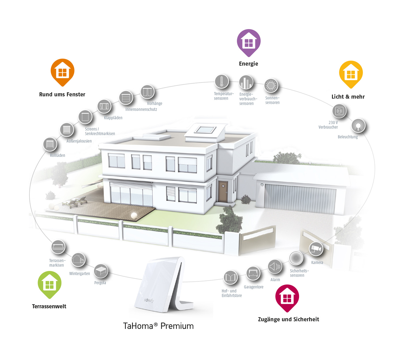 Mit TaHoma® Premium steuern Sie einfach und bequem Ihre gesamte Haustechnik: vom Smartphone, PC, Notebook oder Tablet-PC aus.